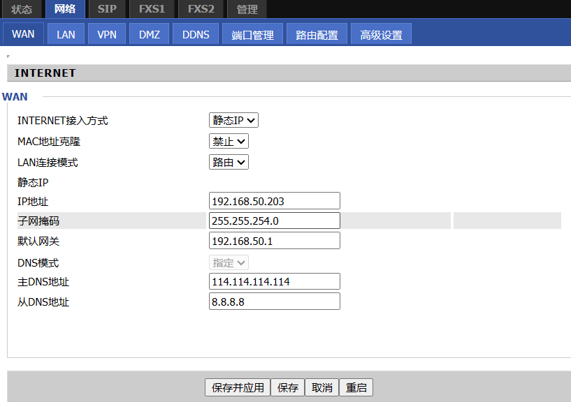 如果无需要设置静态IP地址默认即可,需要改为静态则点击“网络-WAN”进行修改