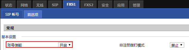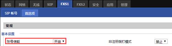 2. 确认线路非注册拨打模式是禁止,状态此选项不用于SIP注册。