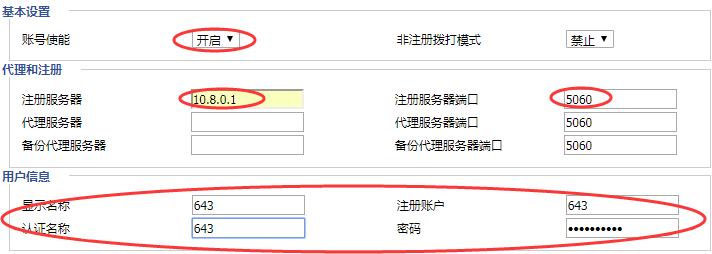 1. 如果是通过虚拟IP地址添加SIP注册,首先配置SIP账户: