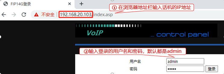 电脑打开浏览器,在“地址栏”输入话机的IP地址,然后按回车键