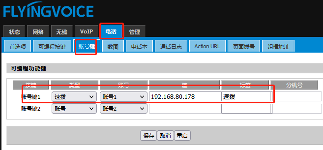 2. 配置好之后直接在话机上按对应的快捷按键即可拨出电话