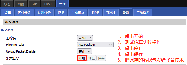 4、抓取传真数据包,联系ITB8888通博技术协助分析处理。