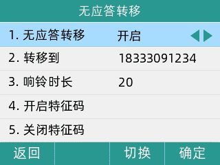 问题描述:来电呼入到话机,在无人接听的时候把来电自动转呼到手机。