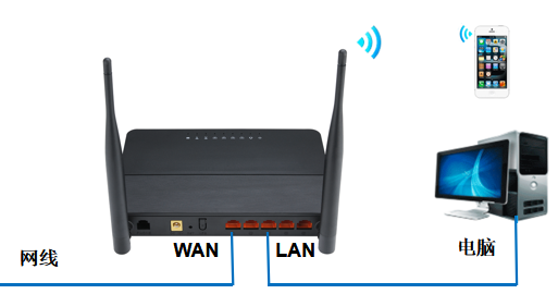 如果前端上网的宽带线是网线,将网线连接到路由器的WAN口,上网电脑连接到路由器的LAN口上。参考连接图如下: