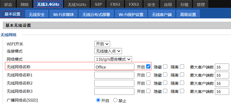 点击“无线2.4GHz”或“无线5GHz”--“基本设置”修改无线名称。