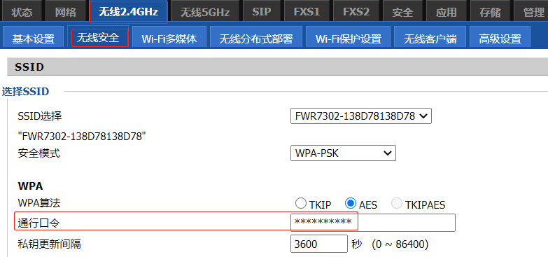 点击“无线2.4GHz”或“无线5GHz”--“无线安全”修改无线密码。