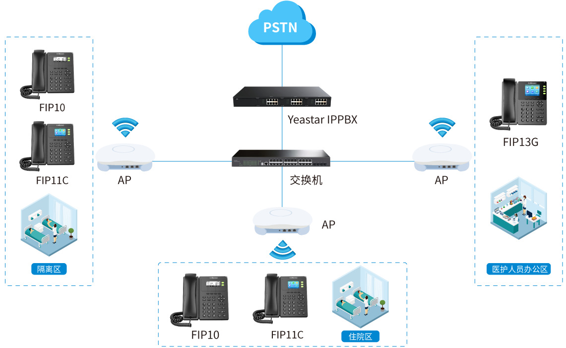 方舱医院IP语音通信方案拓扑图