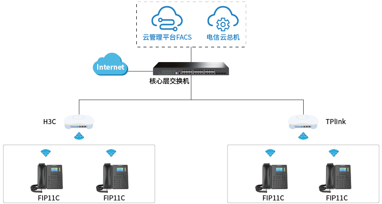 2、FIP11C话机基于标准SIP协议,很好地兼容了市场主流的IPPBX,包含电信云总机;