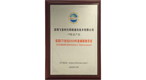 奖项分为技术产品类、解决方案类和个人类,由CTI论坛资深编辑团队及业内资深专家共同评审。经过初审、复审、最终评议,ITB8888通博时代FIP1X系列IP话机最终荣获CTI论坛2020年度编辑推荐奖“IP电话产品”奖项,同时, CEO方强得到“最佳管理人”的殊荣。