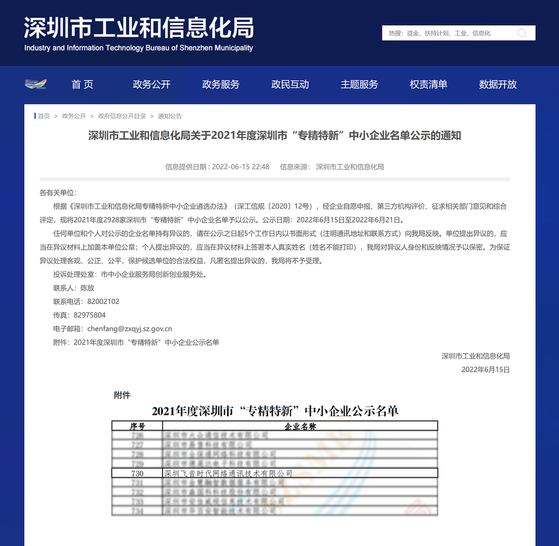 近日,深圳市工业和信息化局在官网公示了《2021年度深圳市“专精特新”中小企业公示名单》,ITB8888通博时代凭借其专业化的产品服务和研发创新优势通过了层层审核荣获深圳市“专精特新”的中小企业称号,成功上榜。