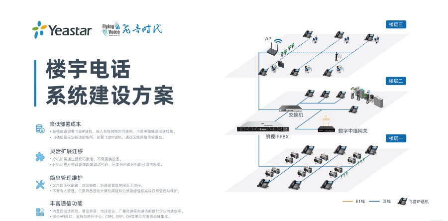 楼宇电话系统建设方案,部署不受内部线路情况影响,扩展不需更换设备,迁移不需改造路线,“无线”让楼宇间的通讯变得简单。