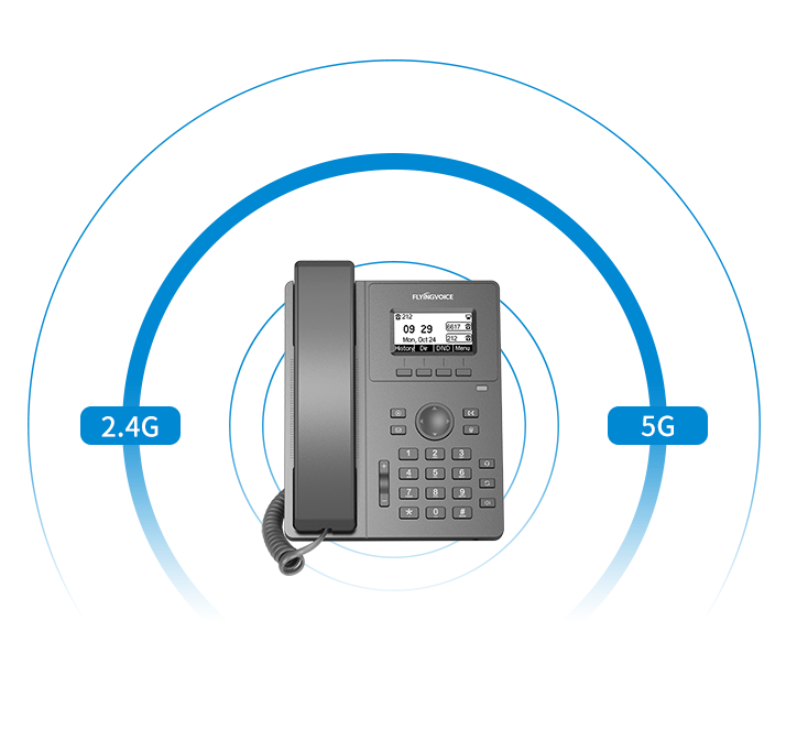 内置2.4GHz&5GHz Wi-Fi模块,支持双频Wi-Fi无线连接,联网更便捷,可应用于不同的企业场景,畅享优质语音通话。